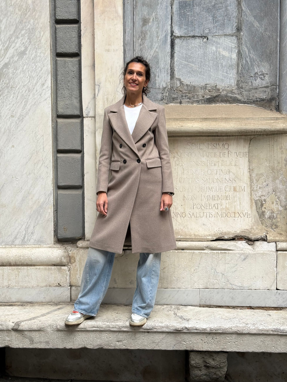 Modella alta 1,77 indossa la taglia 40 (indossando solo una maglia sottile sotto)